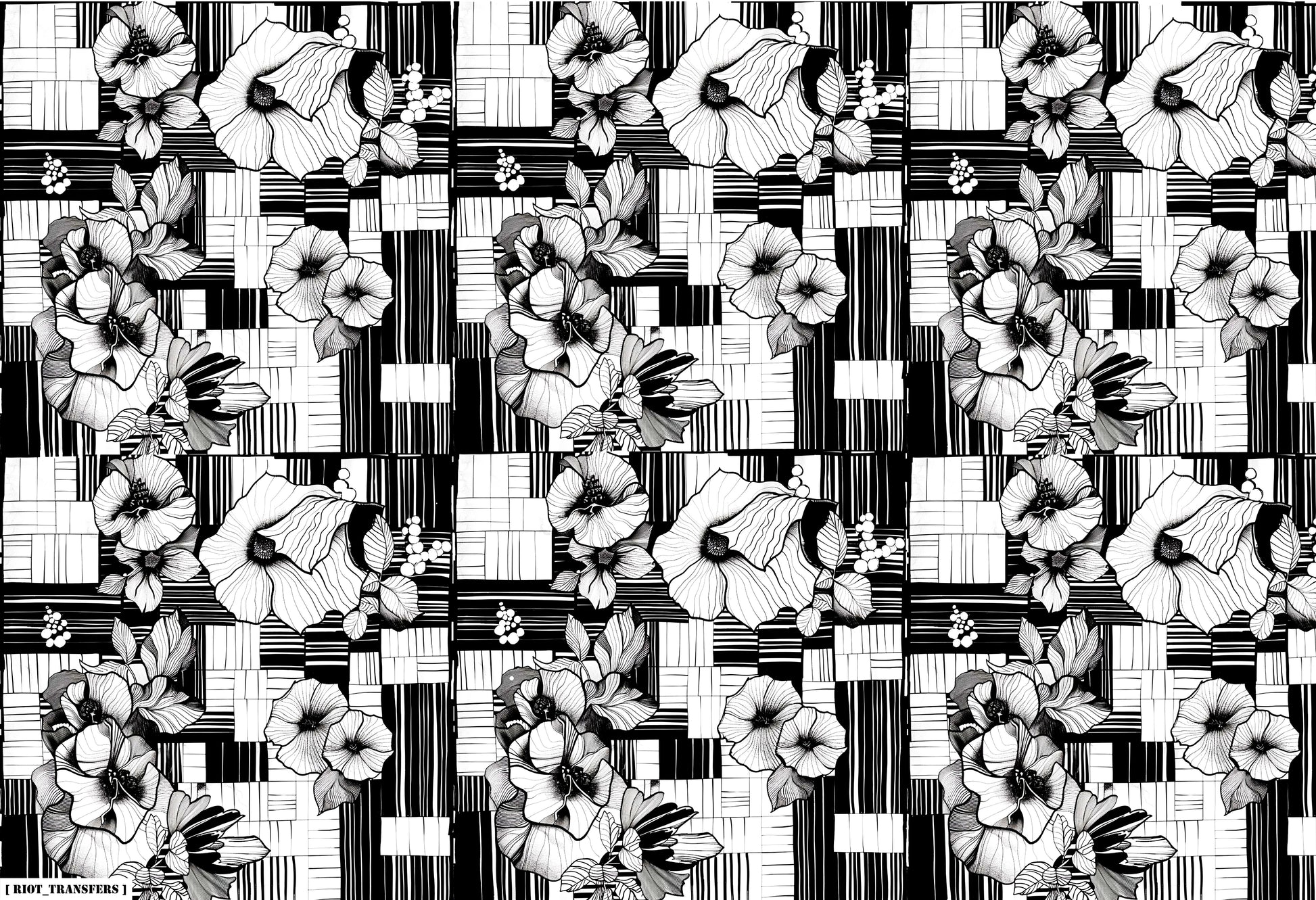Flower Quilt underglaze transfer. Each sheet has a 13x19" usable area. They can be used on greenware or bisque. You can cut, tear, or use them however you like. Apply with a damp sponge, Super easy! I personally use them on bisque and mainly over underglaze. They can be fired in any kiln (Electric, Gas, Soda, Wood, etc) to any temperature. I have personally fired them to Cone 12 in a Soda firing & had great results. All of my personal work that I use transfers on is fired to Cone 5 in an electric kiln and I use AMACO's Mid Range Zinc Free Clear over top.